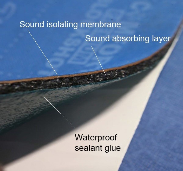 Montāžas slānis ir mūsu jaunā unikālā izstrādes līme-hermētiķis AdiT. Materiāls sastāv no 3 slāņiem: membrānas ar augsta blīvuma akustisko mastiku, skaņu absorbējoša materiāla un adhezīvu hermētiķi.