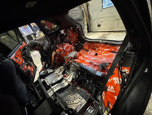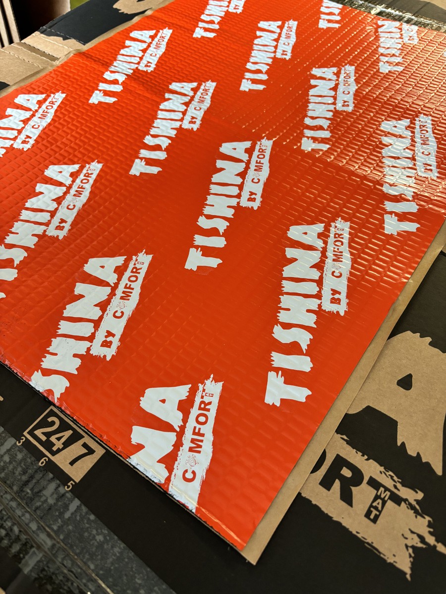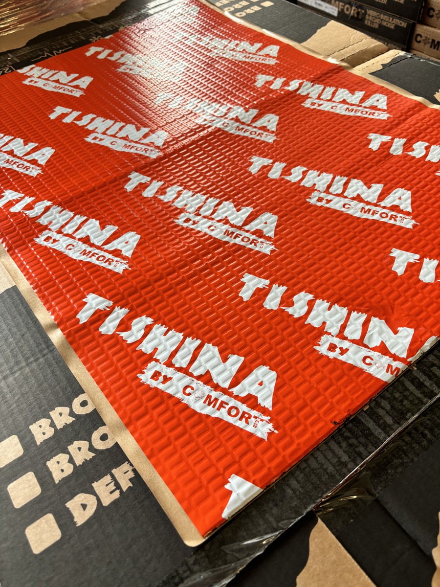 Universāls vibrācijas slāpēšanas materiāls 2 mm biezs ar labu saķeri ar metālu, kas ir mastika, kas izgatavota no īpašu polimēru maisījuma, pastiprināta ar alumīnija foliju.