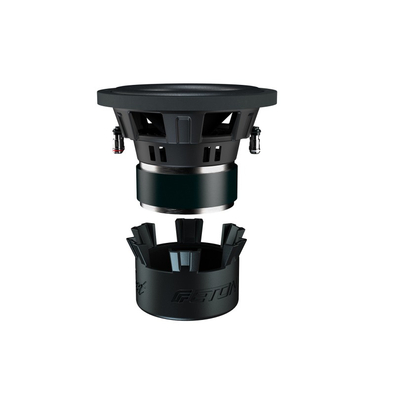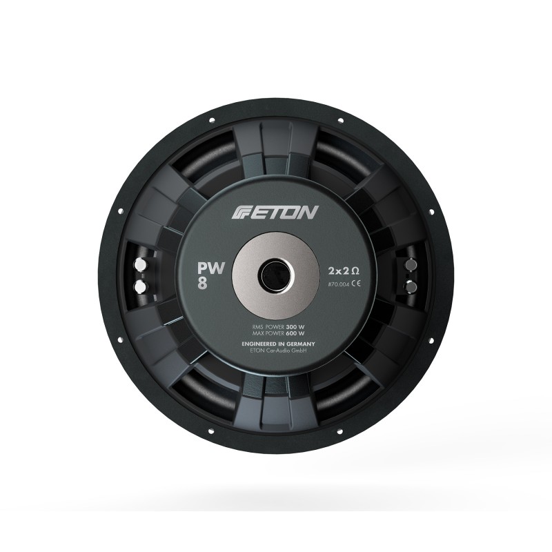 200 mm (8 collas) zemfrekvences skaļrunis pulverkrāsotā metāla grozā ar ielādējamu 50 mm alumīnija dubulto balss spoli, presētu un stingru papīra konusu ar garu izgriezuma apkaimi,