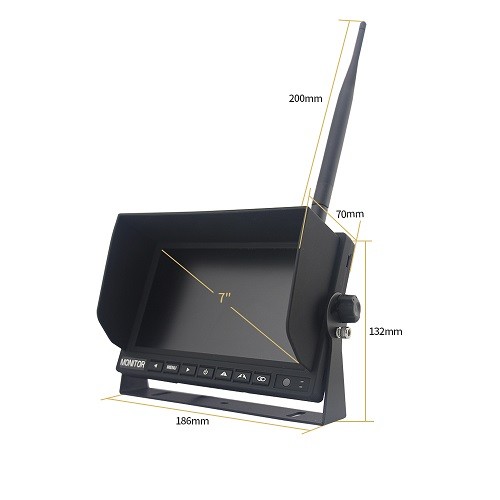 Iepakojuma saturs: monitors, 1x kamera, 2x antena, 2x 1m barošanas kabelis, 1x 3m pagarinātājs ar antenas statīvu, vairogs, abpusēja 3M lente, sešstūra atslēga.