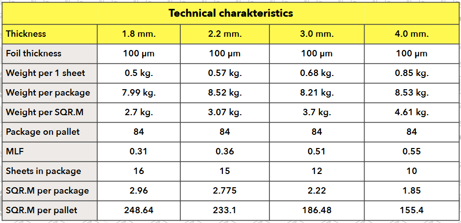 Svars uz 1 m2: 3,07 kg.