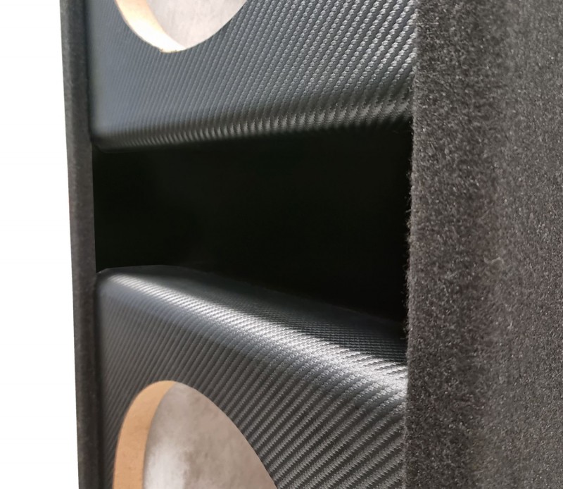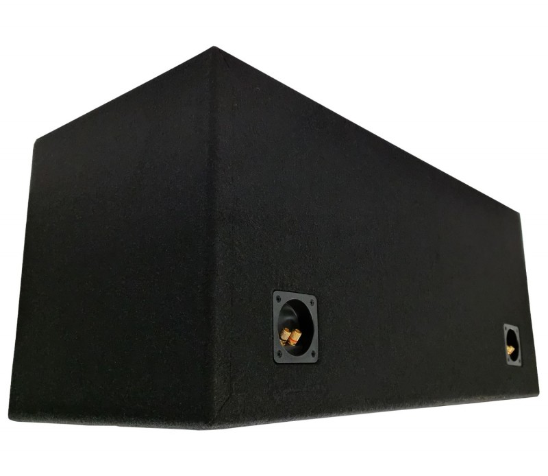 Ported enclosure for 2x12″ subwoofer Net volume: 2x40 liters. Port area: 350 cm2 Port height: 350mm Port width: 100mm Tuning frequency: 38 Hz Diameter of speaker hole: 285mm Measurements ( W x H x D ): 930 x 380 x 400.