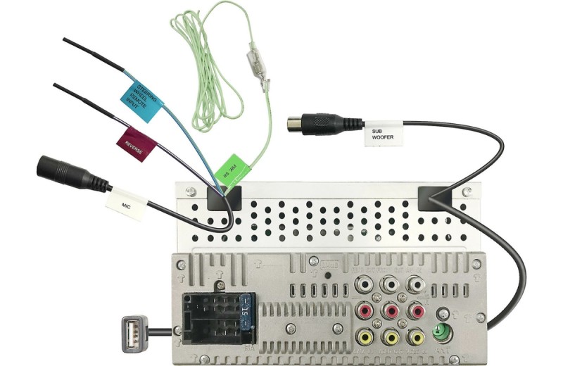 3 2 voltu priekšpastiprinājuma izeju komplekti (priekšējais, aizmugurējais un zemfrekvences skaļrunis)